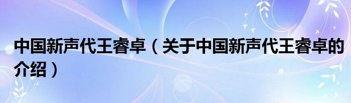 大家好,今天小乐来为大家解答以上的问题。中国新声代王睿卓,关于中国新声代王睿卓的介绍很多人还不知道,现在让我们一起来看看吧!