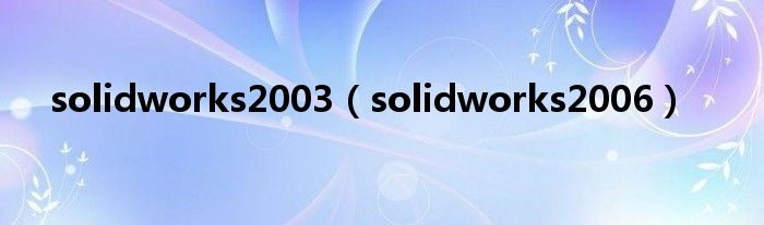 关于solidworks2003,solidworks2006这个很多人还不知道,今天菲菲来为大家解答以上的问题,现在让我们一起来看看吧!