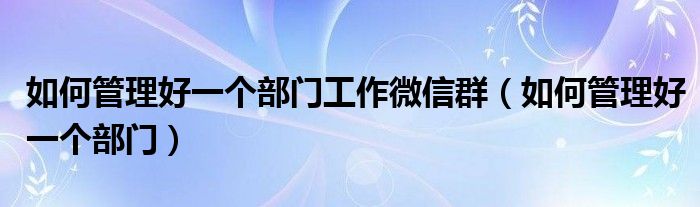 如何管理好一个部门工作微信群(如何管理好一个部门)