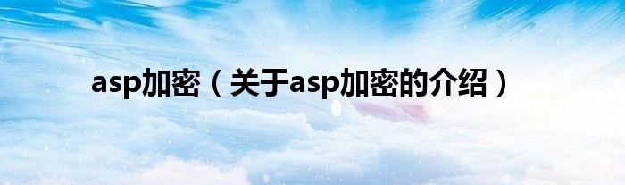 asp加密(关于asp加密的介绍)
