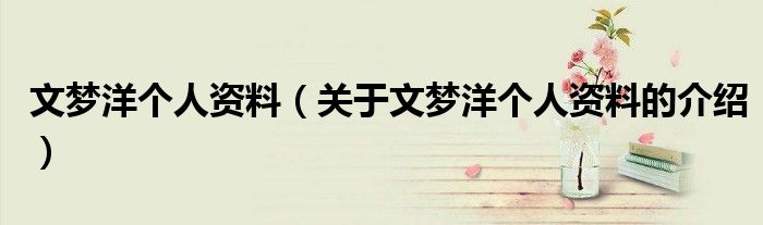 大家好,今天小乐来为大家解答以上的问题。文梦洋个人资料,关于文梦洋个人资料的介绍很多人还不知道,现在让我们一起来看看吧!
