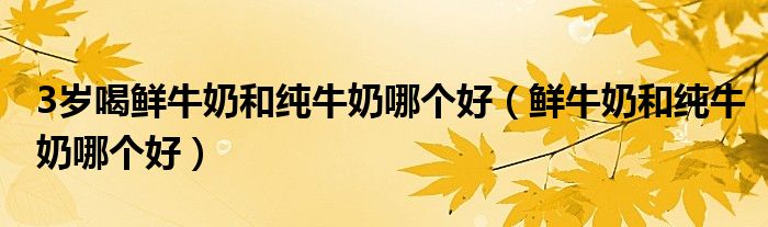 关于3岁喝鲜牛奶和纯牛奶哪个好,鲜牛奶和纯牛奶哪个好这个很多人还不知道,今天菲菲来为大家解答以上的问题,现在让我们一起来看看吧!