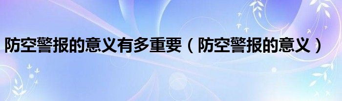 关于防空警报的意义有多重要,防空警报的意义这个很多人还不知道,今天菲菲来为大家解答以上的问题,现在让我们一起来看看吧!