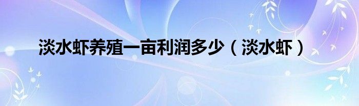 关于淡水虾养殖一亩利润多少,淡水虾这个很多人还不知道,今天菲菲来为大家解答以上的问题,现在让我们一起来看看吧!