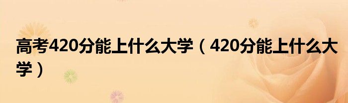 关于高考420分能上什么大学,420分能上什么大学这个很多人还不知道,今天菲菲来为大家解答以上的问题,现在让我们一起来看看吧!