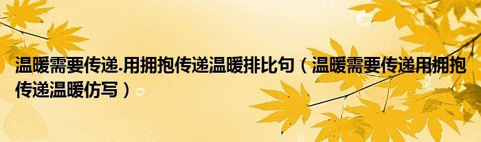 关于温暖需要传递.用拥抱传递温暖排比句,温暖需要传递用拥抱传递温暖仿写这个很多人还不知道,今天菲菲来为大家解答以上的问题,现在让我们一起来看看吧!