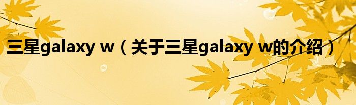 大家好,今天小乐来为大家解答以上的问题。三星galaxy w,关于三星galaxy w的介绍很多人还不知道,现在让我们一起来看看吧!