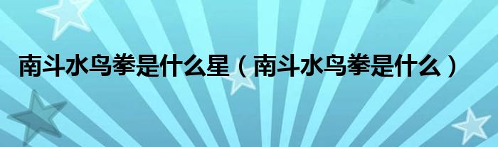 关于南斗水鸟拳是什么星,南斗水鸟拳是什么这个很多人还不知道,今天菲菲来为大家解答以上的问题,现在让我们一起来看看吧!