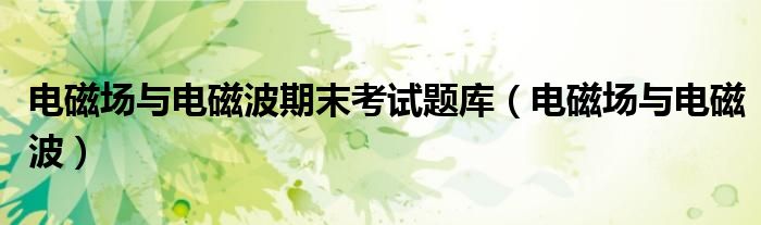 关于电磁场与电磁波期末考试题库,电磁场与电磁波这个很多人还不知道,今天菲菲来为大家解答以上的问题,现在让我们一起来看看吧!