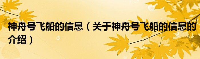 大家好,今天小乐来为大家解答以上的问题。神舟号飞船的信息,关于神舟号飞船的信息的介绍很多人还不知道,现在让我们一起来看看吧!