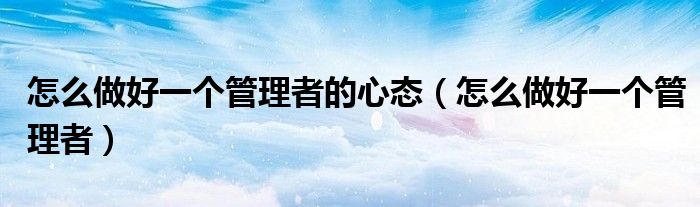 怎么做好一个管理者的心态(怎么做好一个管理者)
