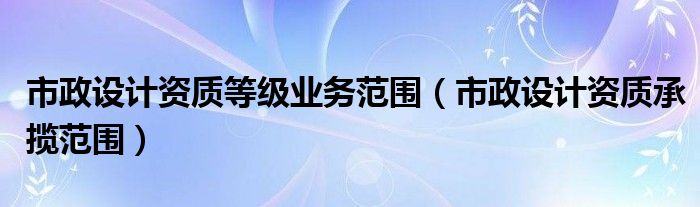 关于市政设计资质等级业务范围,市政设计资质承揽范围这个很多人还不知道,今天菲菲来为大家解答以上的问题,现在让我们一起来看看吧!