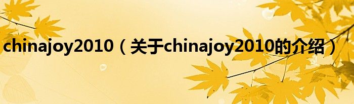 大家好,今天小乐来为大家解答以上的问题。chinajoy2010,关于chinajoy2010的介绍很多人还不知道,现在让我们一起来看看吧!