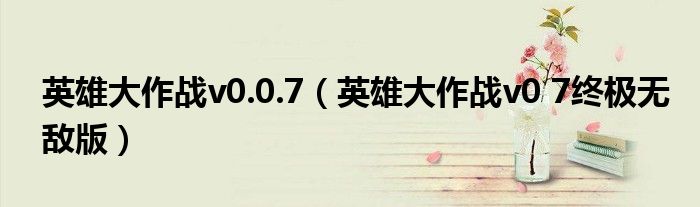 关于英雄大作战v0.0.7,英雄大作战v0 7终极无敌版这个很多人还不知道,今天菲菲来为大家解答以上的问题,现在让我们一起来看看吧!