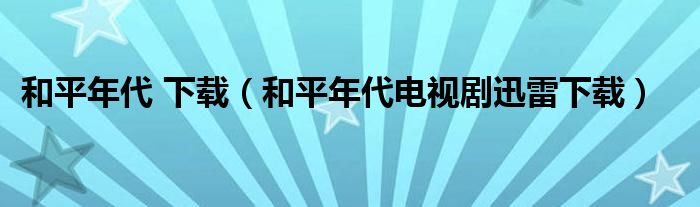 关于和平年代 下载,和平年代电视剧迅雷下载这个很多人还不知道,今天菲菲来为大家解答以上的问题,现在让我们一起来看看吧!
