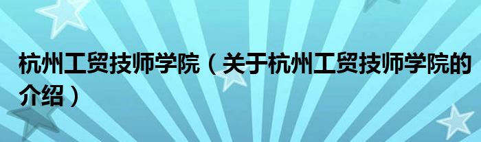 1、杭州工贸技师学院,隶属于全国优秀高职院--浙江工贸职业技术学院,并依托浙江大型国有企业杭州钢铁集团办学。