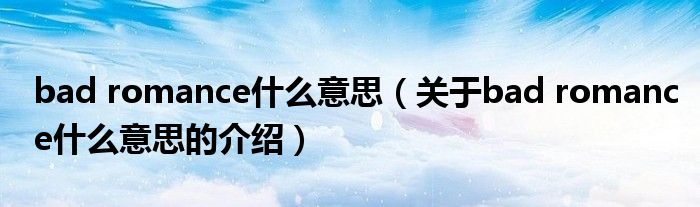 大家好,今天小乐来为大家解答以上的问题。bad romance什么意思,关于bad romance什么意思的介绍很多人还不知道,现在让我们一起来看看吧!