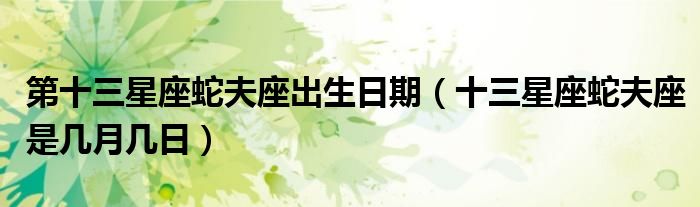 关于第十三星座蛇夫座出生日期,十三星座蛇夫座是几月几日这个很多人还不知道,今天菲菲来为大家解答以上的问题,现在让我们一起来看看吧!