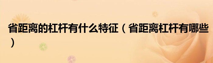 关于省距离的杠杆有什么特征,省距离杠杆有哪些这个很多人还不知道,今天菲菲来为大家解答以上的问题,现在让我们一起来看看吧!