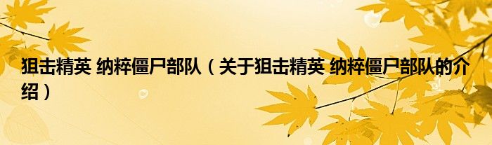 大家好,今天小乐来为大家解答以上的问题。狙击精英 纳粹僵尸部队,关于狙击精英 纳粹僵尸部队的介绍很多人还不知道,现在让我们一起来看看吧!