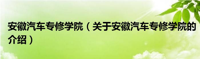 安徽汽车专修学院(关于安徽汽车专修学院的介绍)