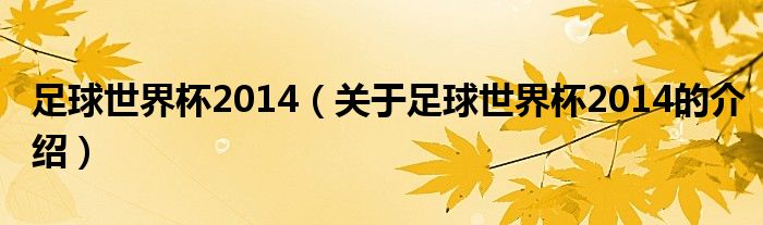 大家好,今天小乐来为大家解答以上的问题。足球世界杯2014,关于足球世界杯2014的介绍很多人还不知道,现在让我们一起来看看吧!