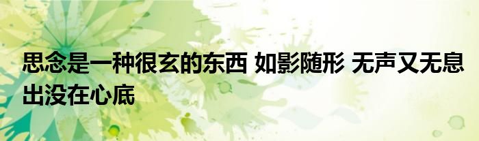 关于思念是一种很玄的东西 如影随形 无声又无息出没在心底这个很多人还不知道,今天菲菲来为大家解答以上的问题,现在让我们一起来看看吧!