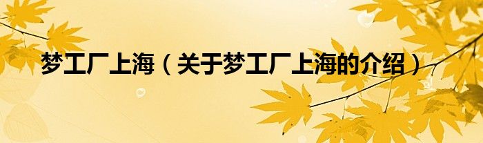 大家好,今天小乐来为大家解答以上的问题。梦工厂上海,关于梦工厂上海的介绍很多人还不知道,现在让我们一起来看看吧!