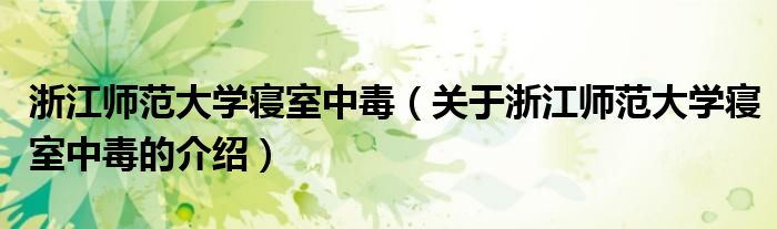 浙江师范大学寝室中毒(关于浙江师范大学寝室中毒的介绍)