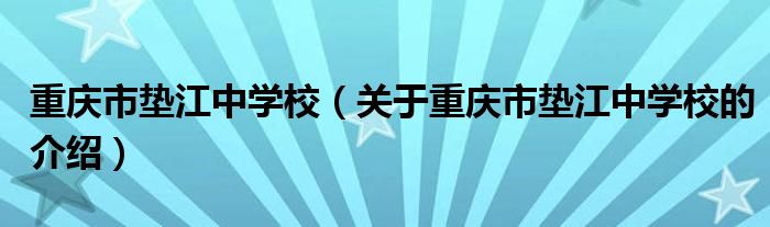 重庆市垫江中学校(关于重庆市垫江中学校的介绍)