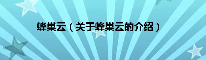 蜂巢云(关于蜂巢云的介绍)
