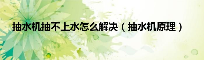 抽水机抽不上水怎么解决,抽水机原理很多人还不知道,乐乐来为大家解答以上问题,现在让我们一起来看看吧!