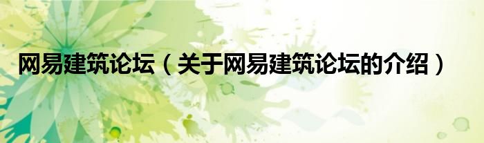 大家好,今天小乐来为大家解答以上的问题。网易建筑论坛,关于网易建筑论坛的介绍很多人还不知道,现在让我们一起来看看吧!