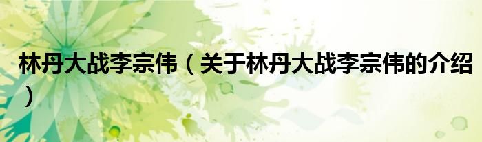林丹大战李宗伟(关于林丹大战李宗伟的介绍)