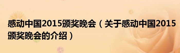 感动中国2015颁奖晚会(关于感动中国2015颁奖晚会的介绍)