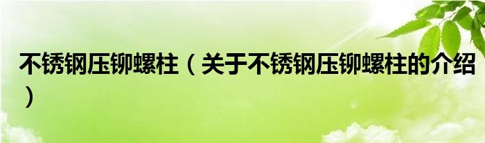 不锈钢压铆螺柱(关于不锈钢压铆螺柱的介绍)