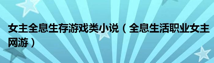 大家好,小晋来为大家解答以下问题,关于女主全息生存游戏类小说,全息生活职业女主网游很多人还不知道,今天让我们一起来看看吧!