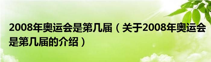 2008年奥运会是第几届(关于2008年奥运会是第几届的介绍)