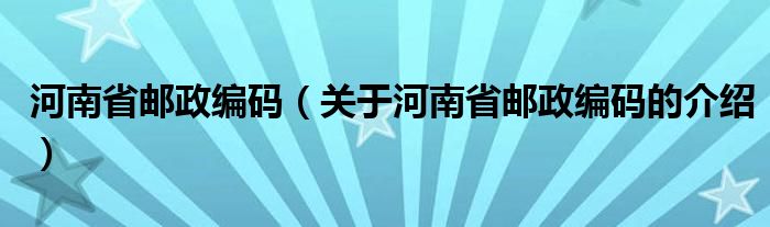 河南省邮政编码(关于河南省邮政编码的介绍)