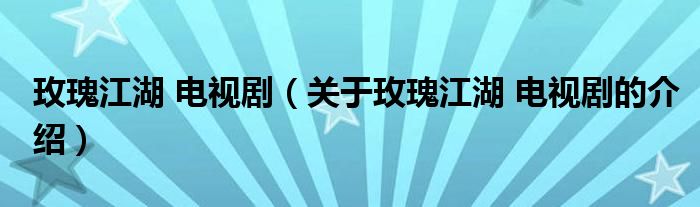 玫瑰江湖 电视剧(关于玫瑰江湖 电视剧的介绍)