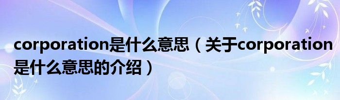 corporation是什么意思(关于corporation是什么意思的介绍)