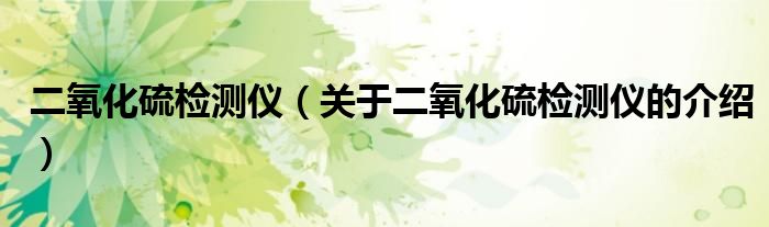 二氧化硫检测仪(关于二氧化硫检测仪的介绍)
