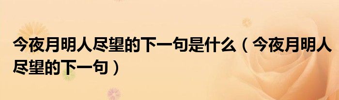 大家好,雨雨来为大家解答以上问题,今夜月明人尽望的下一句是什么,今夜月明人尽望的下一句很多人还不知道,现在让我们一起来看看吧!
