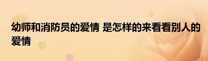 大家好.我是互联百科的羽儿,现在为大家解决以上幼师和消防员的爱情 是怎样的来看看别人的爱情的问题.