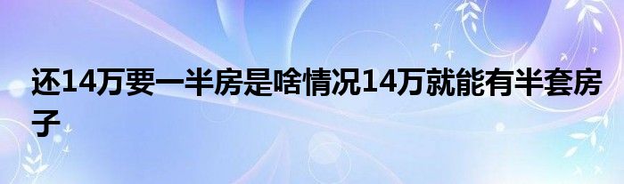 大家好.我是互联百科的羽儿,现在为大家解决以上还14万要一半房是啥情况14万就能有半套房子的问题.