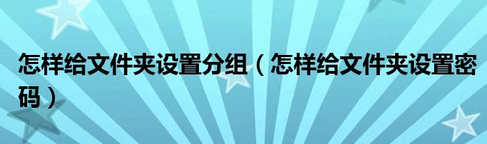 大家好,雨雨来为大家解答以上问题,怎样给文件夹设置分组,怎样给文件夹设置密码很多人还不知道,现在让我们一起来看看吧!