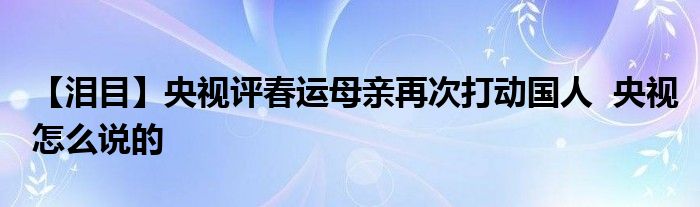 大家好.我是互联百科的羽儿,现在为大家解决以上【泪目】央视评春运母亲再次打动国人 央视怎么说的的问题.
