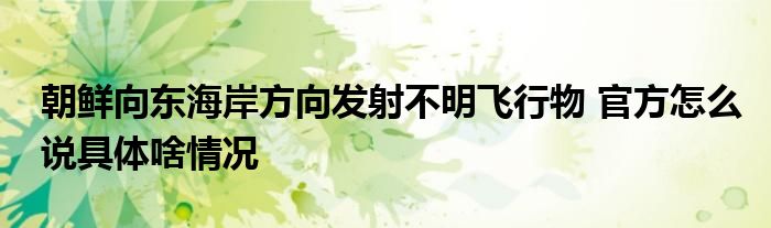 大家好.我是互联百科的羽儿,现在为大家解决以上朝鲜向东海岸方向发射不明飞行物 官方怎么说具体啥情况的问题.