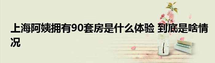 大家好.我是互联百科的羽儿,现在为大家解决以上上海阿姨拥有90套房是什么体验 到底是啥情况的问题.