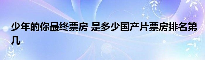 大家好.我是互联百科的羽儿,现在为大家解决以上少年的你最终票房 是多少国产片票房排名第几的问题.